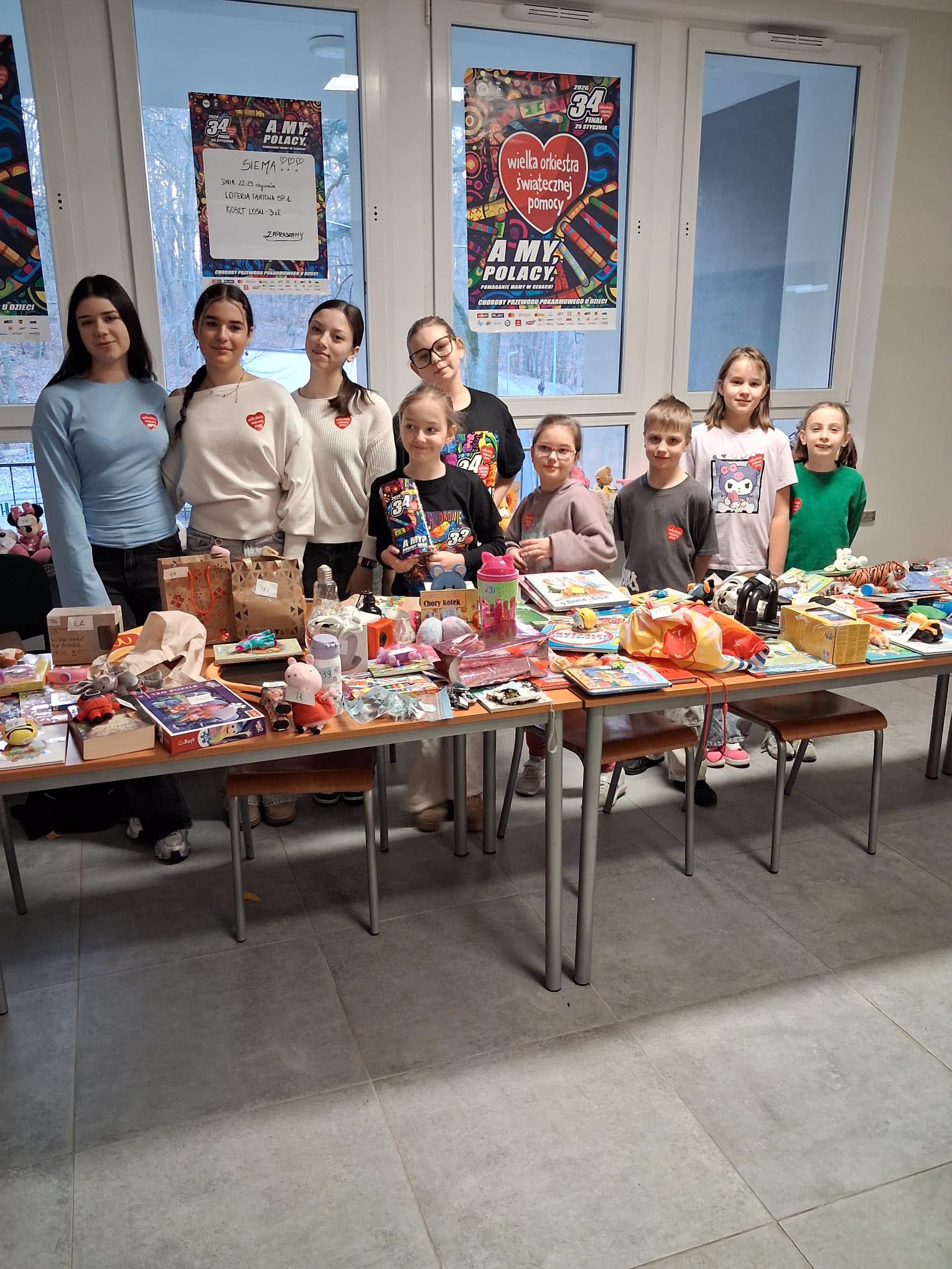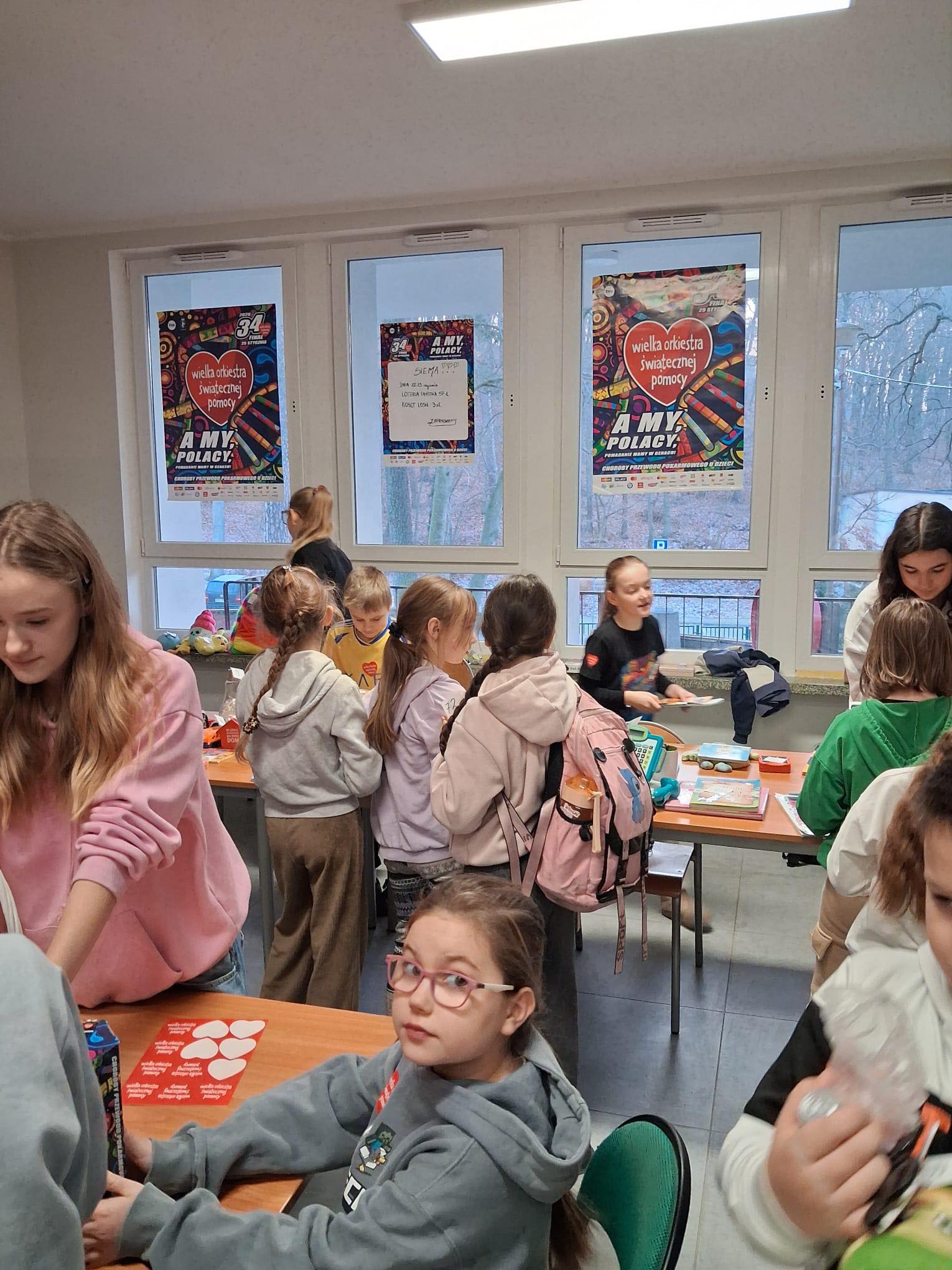Samorządy Uczniowskie klas 1-3 i 4-8 zorganizowały loterię fantową na rzecz WOŚP. Wydarzenie odbyło się 22 i 23 stycznia 2026 roku na terenie szkoły i cieszyło się dużym zainteresowaniem wśród uczniów oraz pracowników szkoły. Fanty do loterii zostały wcześniej zebrane dzięki zaangażowaniu społeczności szkolnej, Całkowity dochód w kwocie 1877, 93 zł i 80 euro został przekazany na wsparcie działań WOŚP. Akcja miała na celu nie tylko pomoc potrzebującym, ale również promowanie idei wolontariatu i współpracy. Dziękuję wszystkim za zrozumienie i pomoc.