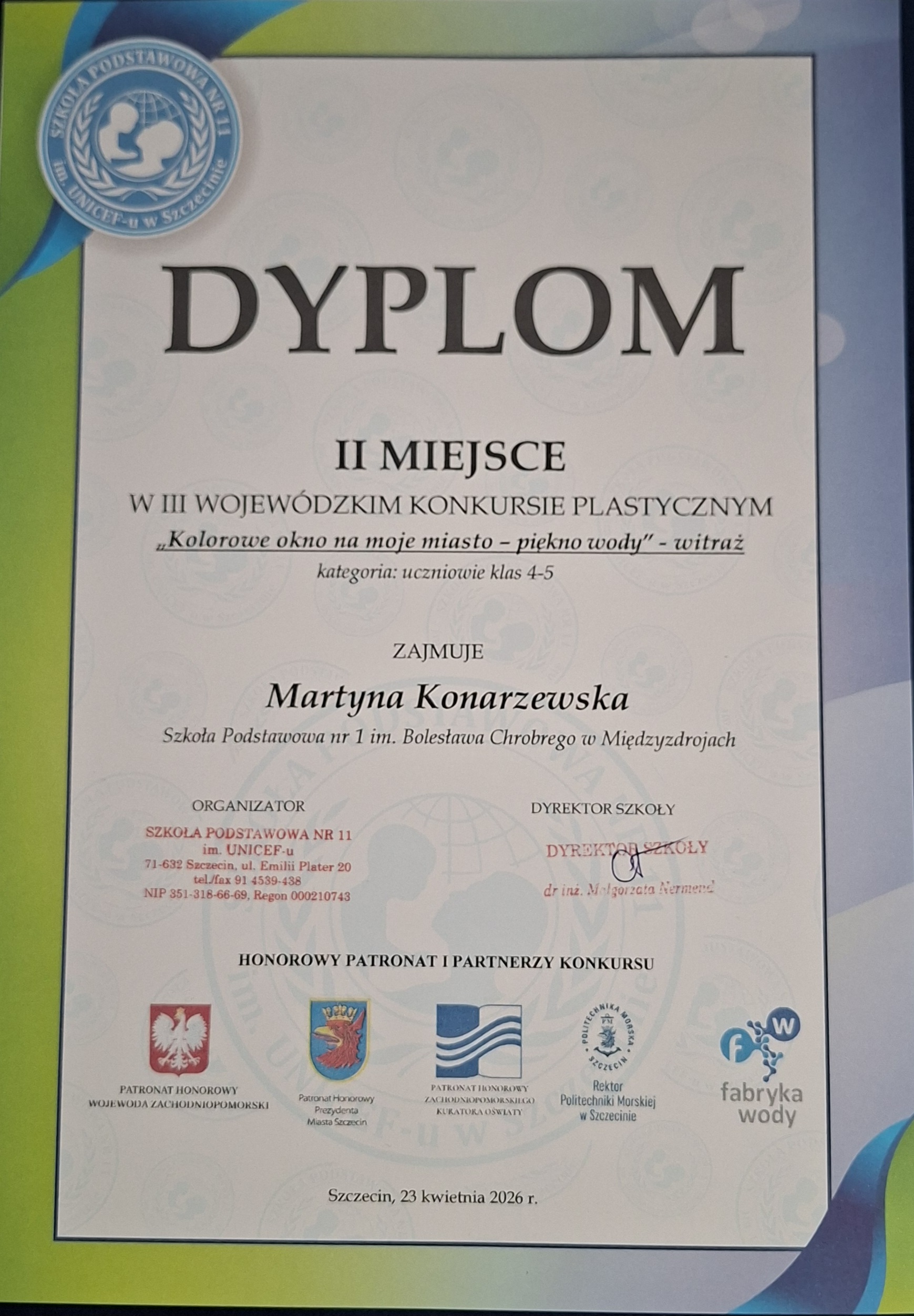 Organizatorem konkursu była Szkoła Podstawowa nr 11 w Szczecinie, a partnerem strategicznym edycji – Fabryka Wody Sp. z o.o.